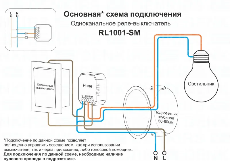 Wi-Fi реле-выключатель одноканальное Denkirs 1x2300Вт/250Вт для LED RL1001-SM купить в Самаре по лучшей цене