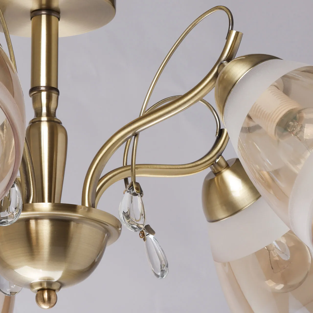 Основание/ металл/ античная бронза Плафон/ стекло/ матовое, шампань Декор/ хрустальное стекло/ про