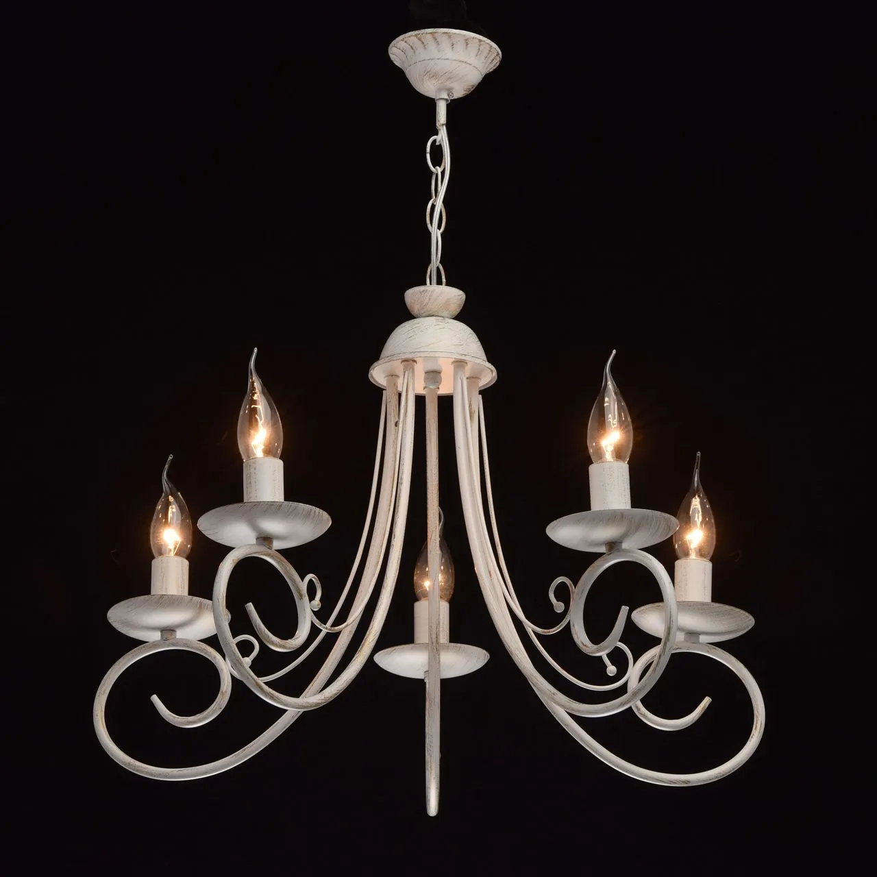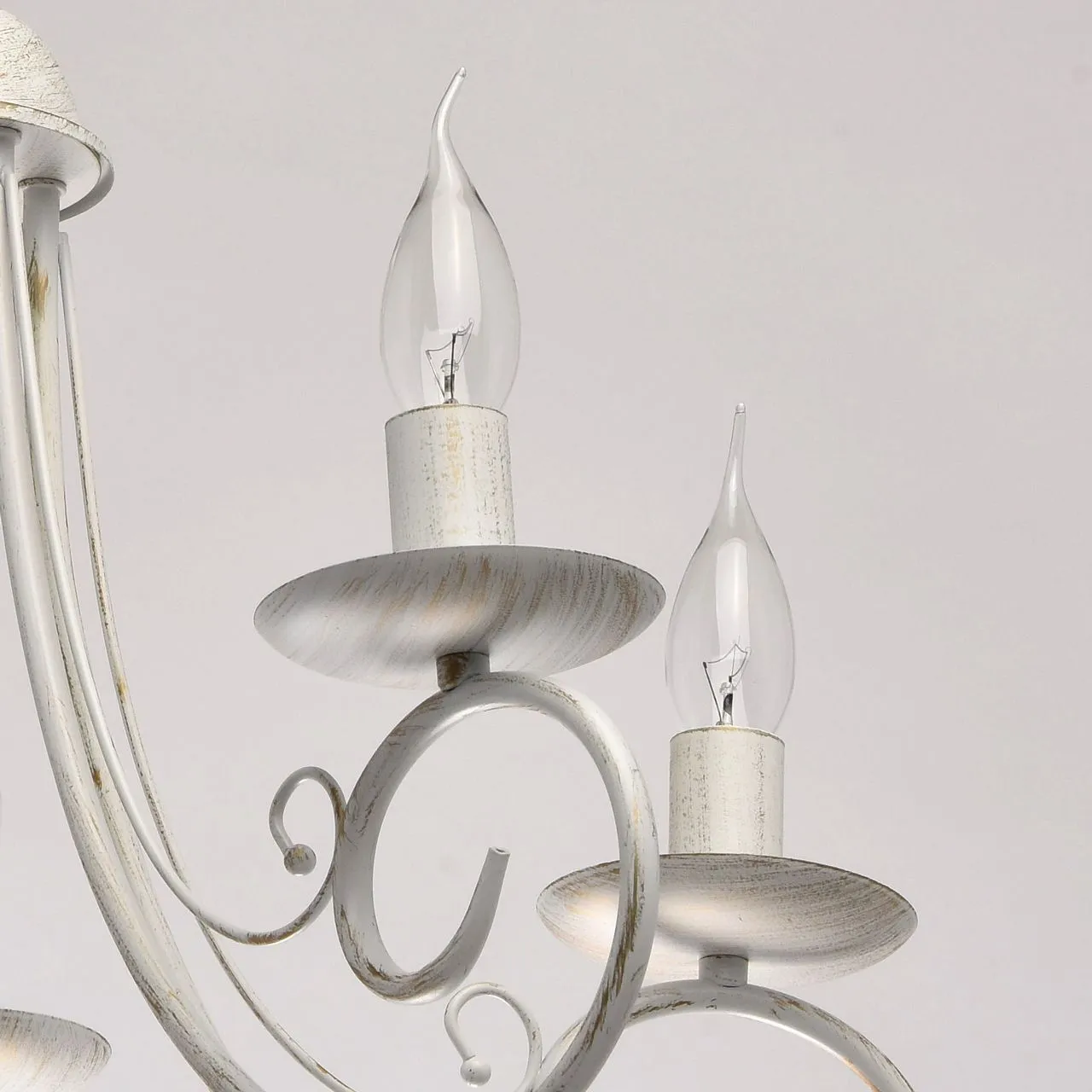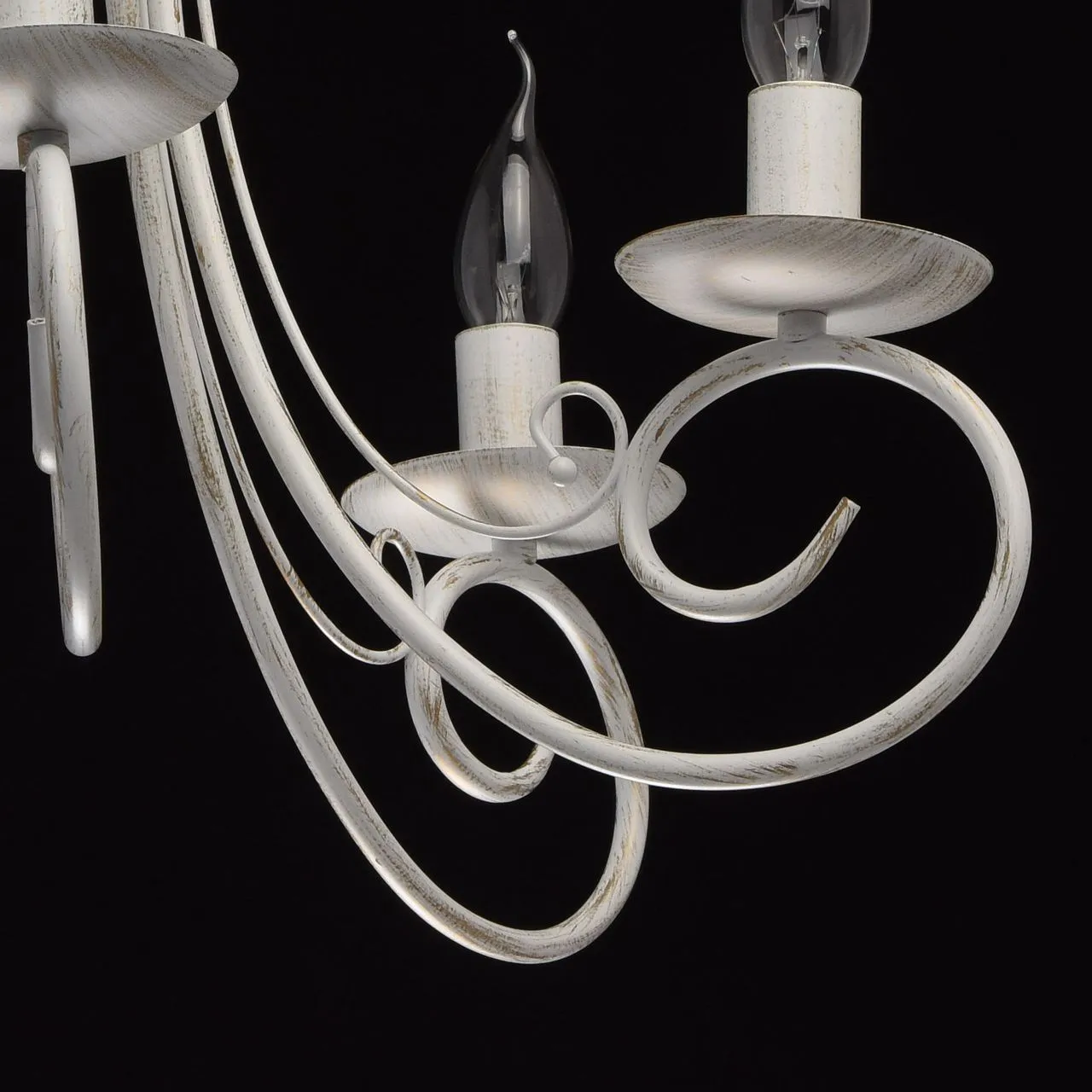 Металлическое основание матового белого цвета с золотистой патиной. Декор: металлические завитки бел