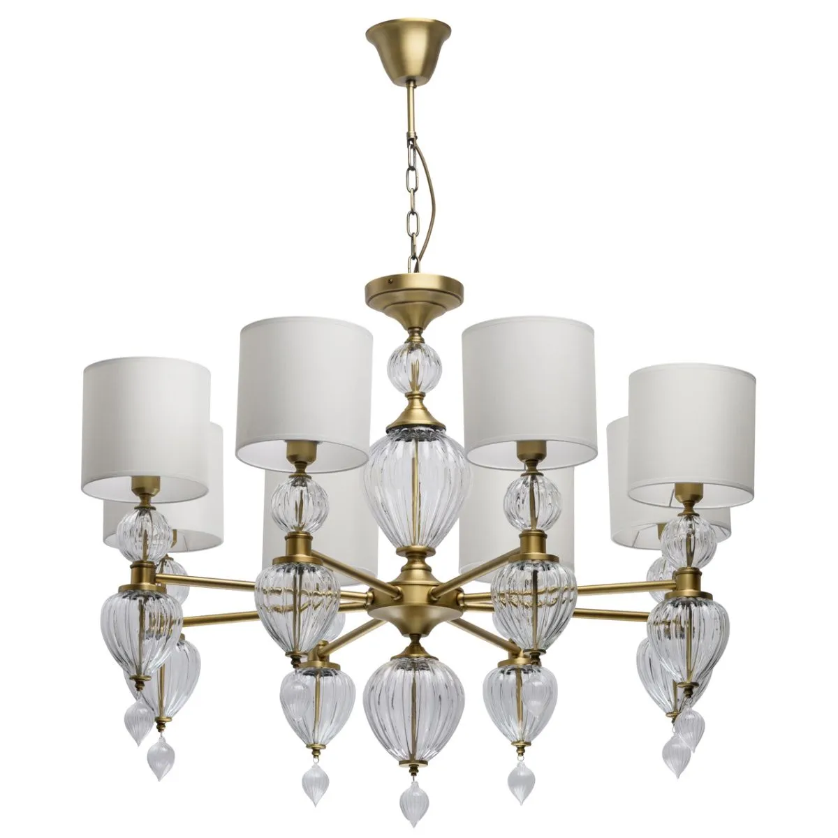 Основание/металл/латунь Абажур/текстиль/белый Декор/стекло