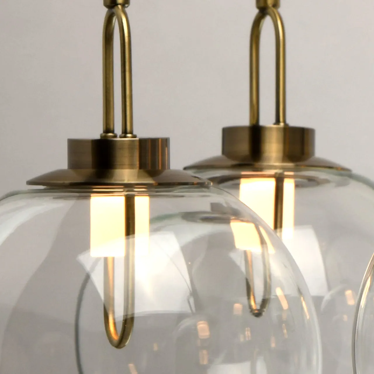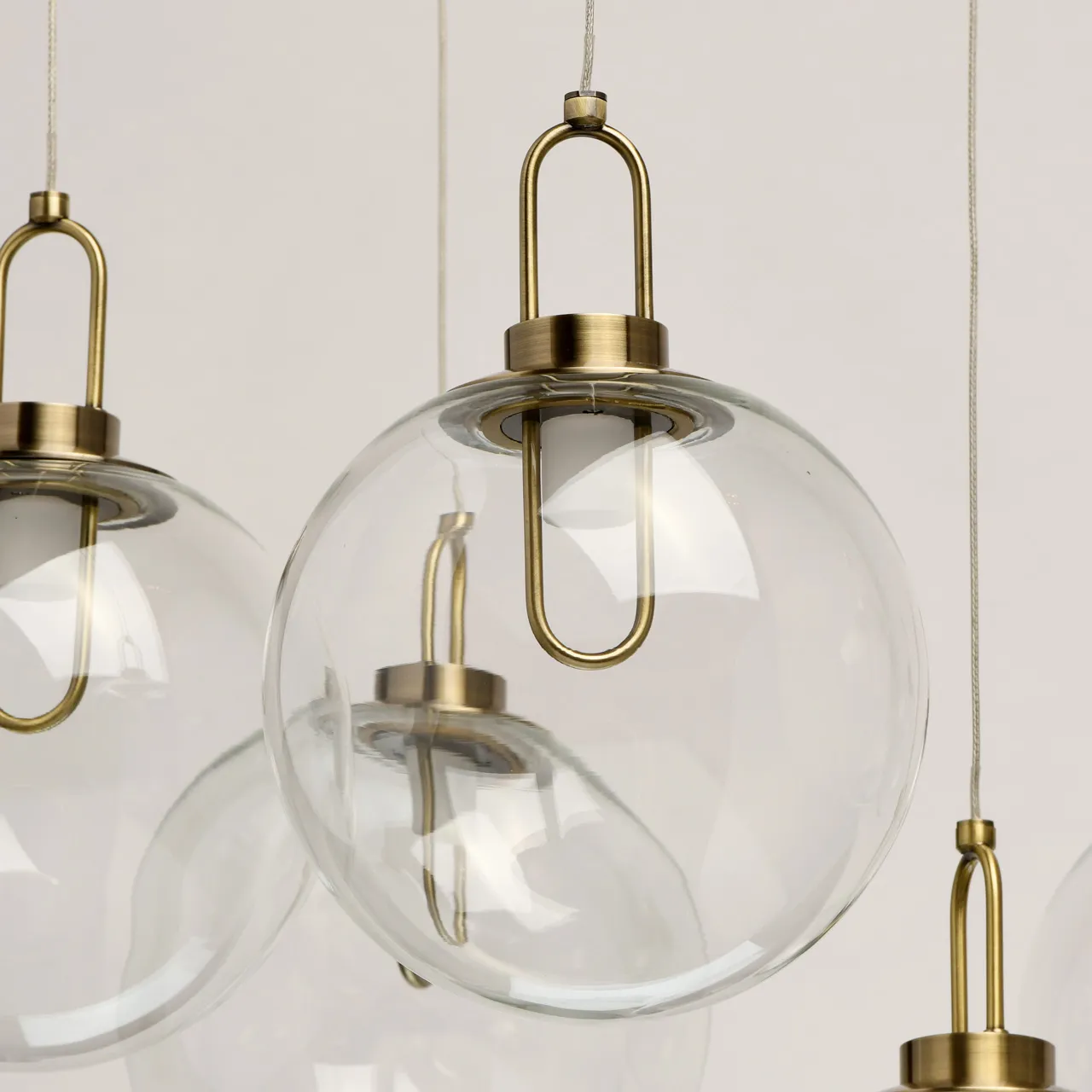Металлическое основание цвета античной бронзы. Плафоны из прозрачного стекла.